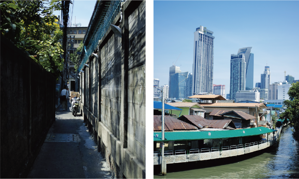 二日目は少し余裕も出てきたので、ランチ時間を利用して付近を歩いてみることに。サイアム・パラゴンのあるエリアは絵に描いたような大都会でしたが、たった15分も歩けば平凡でローカルな生活空間が横たわっていることがわかり、都市開発の歴史をギュッと縮めたような光景に目が奪われます。