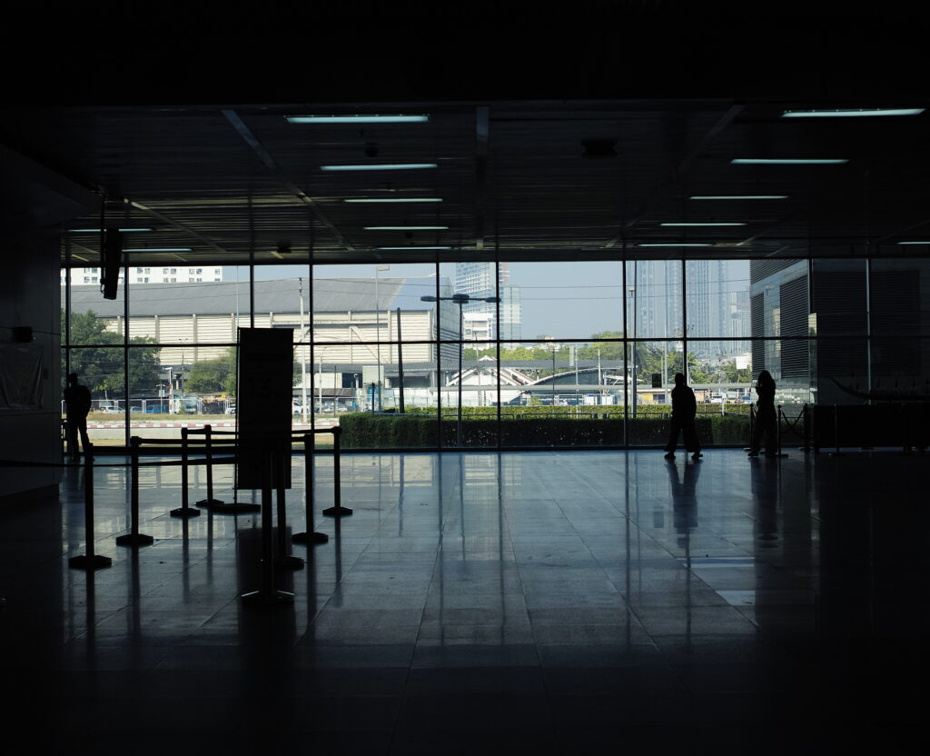 帰国便のフライトが午前のため朝早くにホテルを出発。すでに若干の土地勘が芽生え、Googleマップにも表示されない裏路地を迷わず歩き、ストレスなく電車を乗り継いで、ドンムアン国際空港に到着。ほとんど空港とホテルと展示会場だけの滞在で、ワット・ポー観光もムエタイ観戦も足マッサージも屋台の食べ歩きも叶いませんでしたが、それ以上にブースでの時間はとても貴重な経験に。